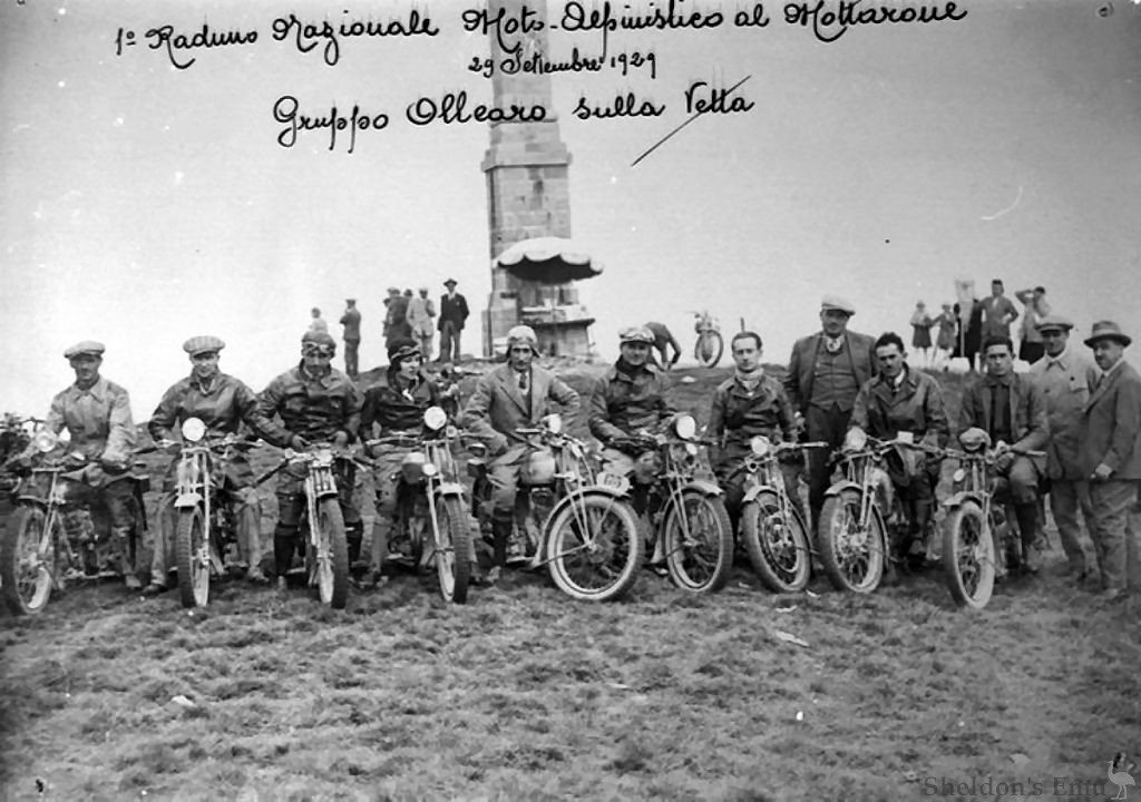 Group of nine Ollearo riders at the summit of Mottarone. Eva Martone, "la Birusa" (the Veloce), is the fourth from the left. 29 September 1929.