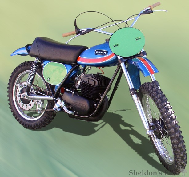 The Phantom models were contrived in an attempt by Ossa to return to the motocross segment. In 1974 the first version arrived as a 250 derived from prototypes of mountain, cross and T.T. races. Weighing only 88.5 kg, it was an excellent handler and some quite renowned riders were signed to officially compete with it.