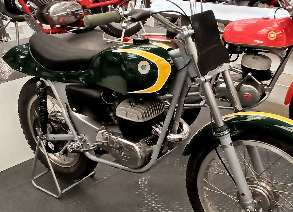 Second version of the 250 MAR now called Trial 74. Important improvements in the engine, developments, cylinder, crankshaft and even crankcases and few aesthetic changes, highlighting above all the change in the design of its paint, varying the green bands that cross the tank and side covers. It would be used by Jack Mathews in England, obtaining the sidetrial championship the same year as his appearance.