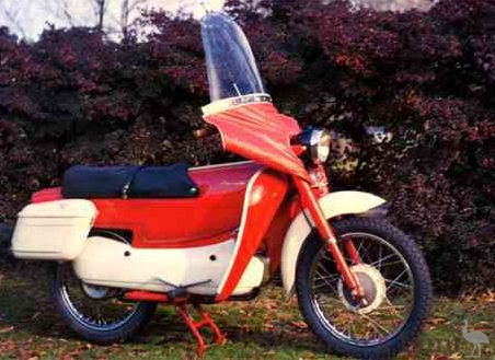 Here a picture of my restored Slughi 98cc 2-stroke. It is imported from Italy. In 2001 I visted the Int. Parilla Days in Italy with this bike. It broke down and they allow me to repare it in the factory (now ITAL SISTEM racing kart factory)