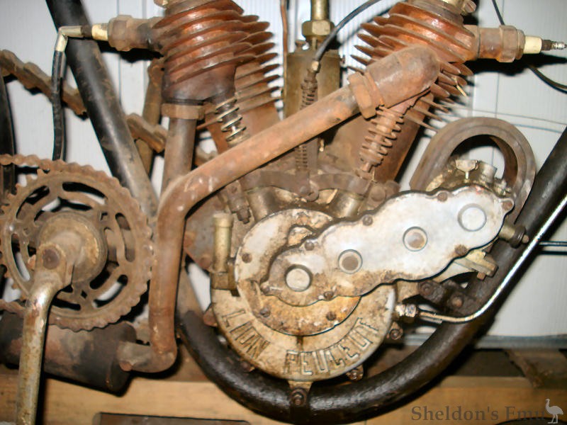 The first motorcycles were built in 1899, fitted with Zédèl engines, and by 1902 these were named Peugeot-Zédèl, with the name cast into the crankcase. The first Peugeot engines were produced in 1904, and in 1905 four new V-twin engines were released, all with the letters PF (Peugeot Frères) embossed on the cases.