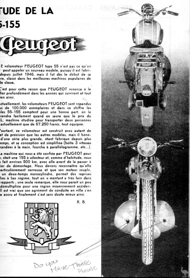 May I ask if you have technical data for motorcycle Peugeot 55AL? And if you have, could you please copy them and send them?