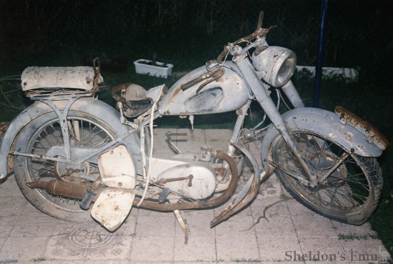 - 1950. I suppose it is a two stroke engine 100-150 cc. I