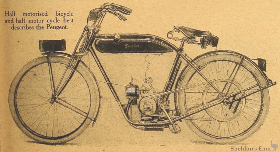 Easily the most expensive miniature in the Show is the French-built Peugeot. At £55 it costs approximately the same as one or two geared and chain-driven British 350 c.c. solo machines. On the other hand, the workmanship and finish could not be surpassed, and the neat appearance of the power unit is such as will inevitably attract the elderly pedal cyclist.