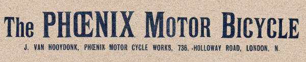 J. Van Hooydonk, Phoenix Motor Cycle Works, 736, Holloway Road, London N.
