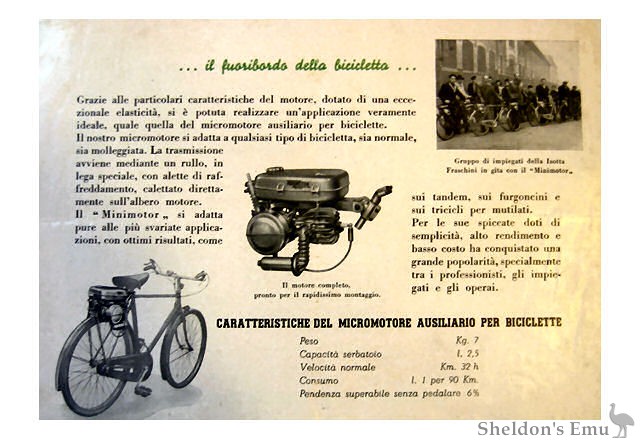 The Mini Motor was a 49cc auxiliary motor with a weight of 7 kg, which is applied over the rear wheel of the bicycle, the transmission and a grip roller.