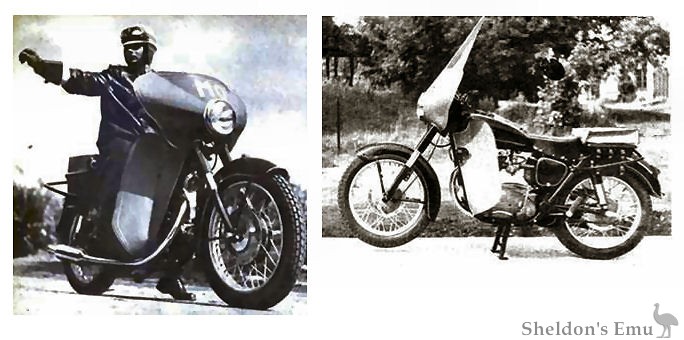 In 1960, constructors from SFM prepared a special version of Junak for the needs of the road patrols of the Citizens' Militia. This adaptation consisted of equipping the motorcycle with a wide fairing with a windshield and leg guards, a solo seat, and radio apparatus with a range of 20 km. The microphone was placed on the handlebars and could be used whist riding. In addition, the motorcycle had a tubular bar around the radio designed to protect the apparatus from damage in the event of accident.