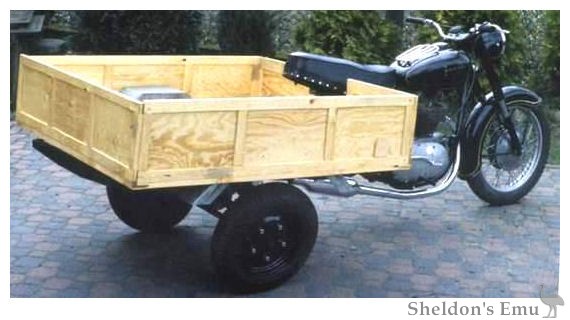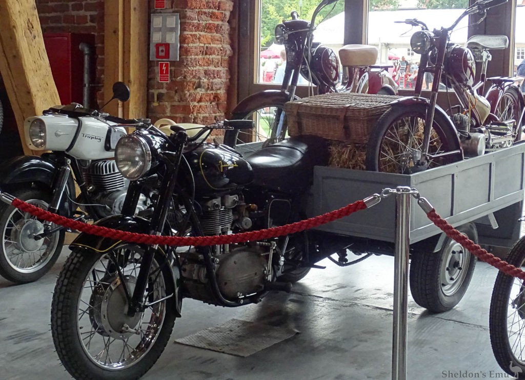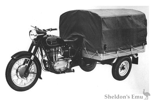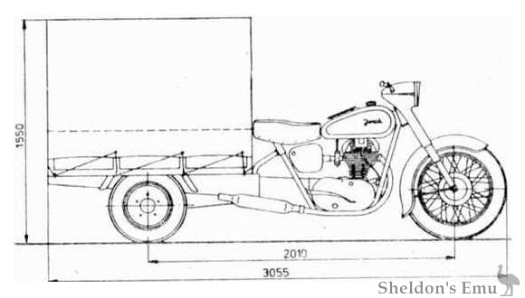 The motorcycle weighed 320 kg and had a fairly large load capacity of 300 kg. Fuel consumption was 5.7 l/100 km, and the top speed was 75 km/h.