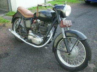 Has no lug for the chain cover; on the seat, armband passenger handle; decorative grille under the headlight is rectangular. Mudguards are deeply valanced, full-width cast iron brake drums, and built-in lamp. Fairly small carburettor.