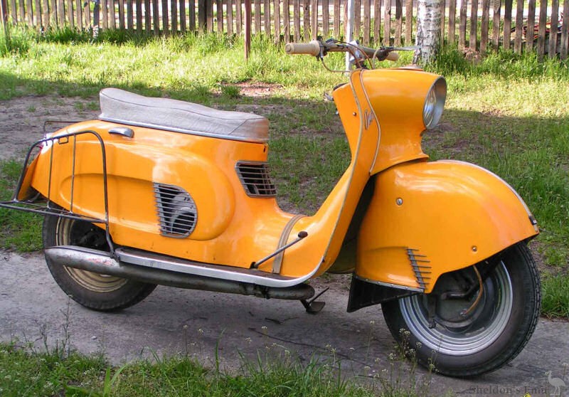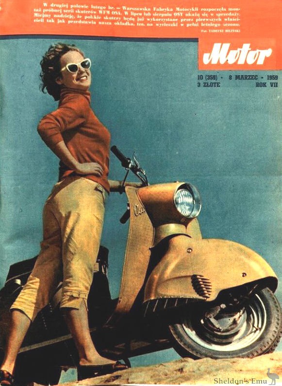 The Polish factory WFM (Warszawska Fabrica Motocyklowa) began designing scooters in 1952 to address the demand in countries controlled by the USSR. They built three prototypes in 1955-56, the best of which was named the Osa. Using the S-06 engine, a small batch of Osa scooters was built in early 1959 and production began in May of that year.