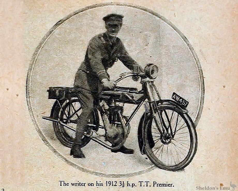 The writer on his 1912 3½ h.p. T.T. Premier.