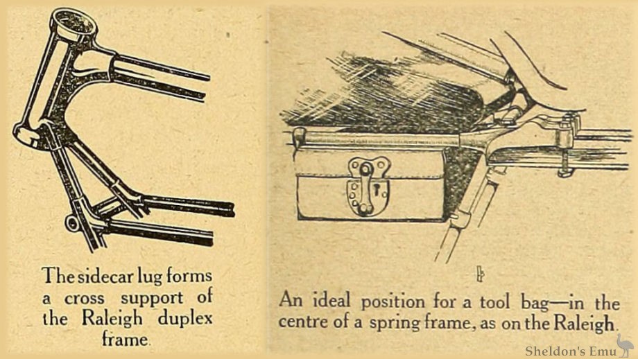 The sidecar lug forms a cross support or the Raleigh duplex frame.