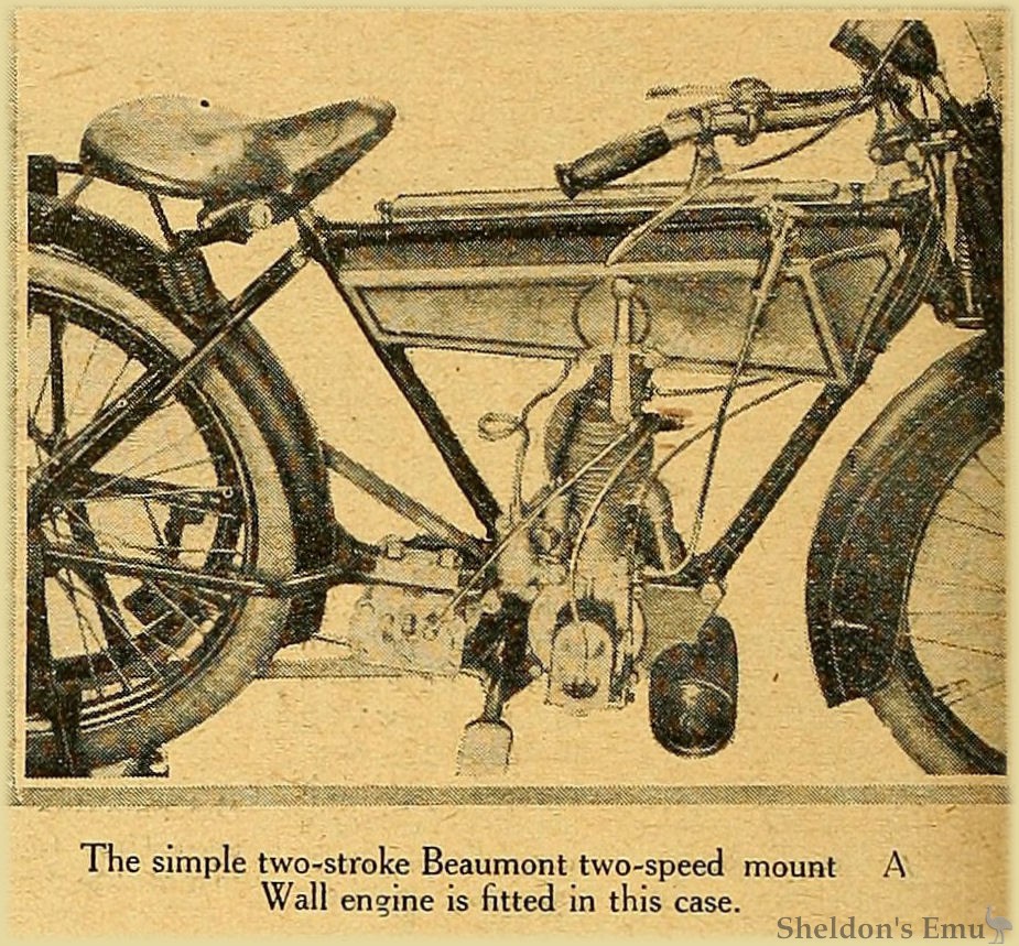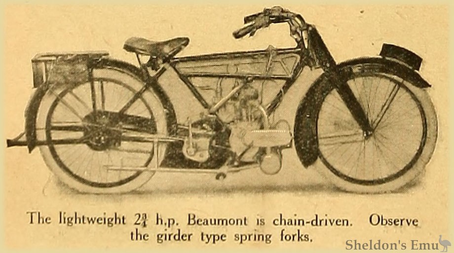 The lightweight 2¾ h.p. Beaumont is chain-driven. Observe the girder type spring forks.