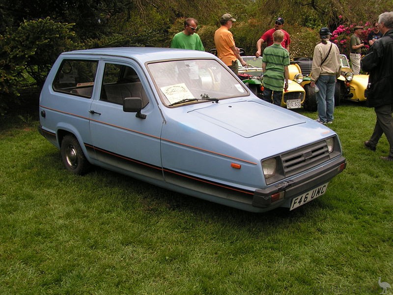 Most of these quirky and distinctly British small cars used Europe's first mass-produced lightweight overhead valve aluminium alloy engine, initially 598 cc but enlarged through the years to a final 848 cc in 1975. (Early Reliant three-wheelers used an engine derived from the 747cc 1930s Austin Seven ). Reliant's own aluminium alloy engine is also used as the replacement for the Austin Seven engine by the 750 Motor Club in their Formula 750 motor sport.