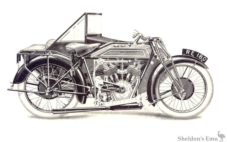 1912 There were three models for that year: the 2.75hp V-twin, a 2.5hp ladies' single and a 6hp sidecar V-twin using a JAP engine. Chain drive, two speeds and Druid forks were common to all. The Enfield Cush drive made its first appearance.