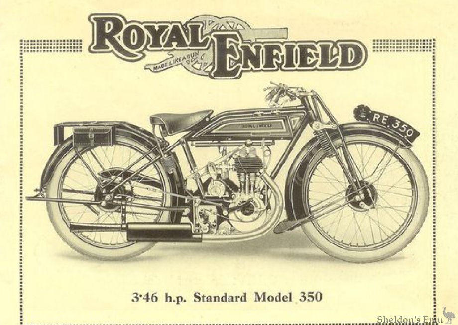 FRAME. Low saddle position. Royal Enfield Front Forks with shock absorbers. Footrests (Footboards and legshields extra).