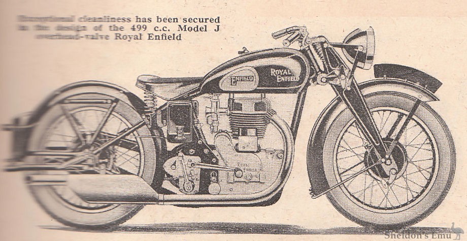 Unconventional cleanliness has been secured in the design of the 499 c.c. Model J Royal Enfield