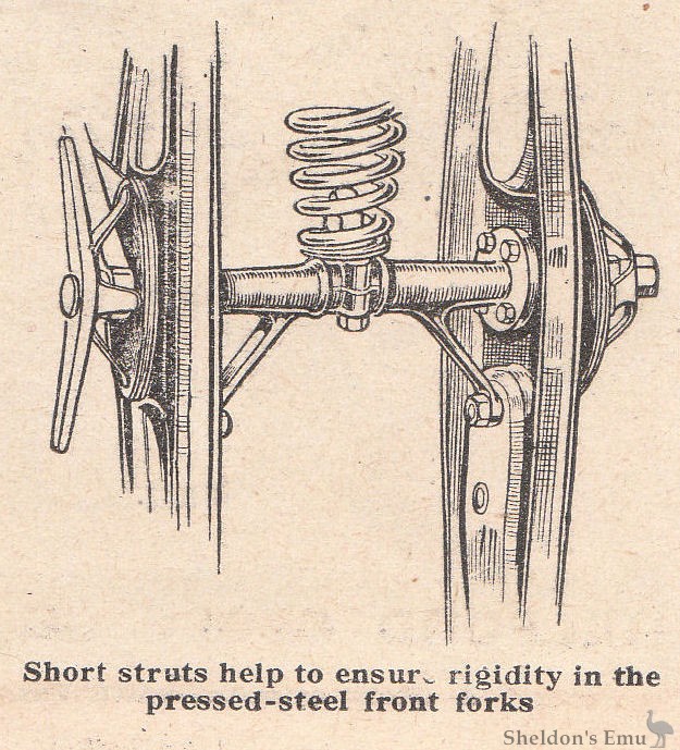 Short struts help to ensure rigidity in the pressed-steel front forks