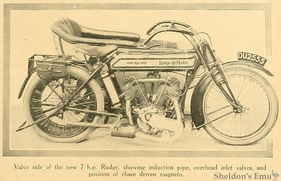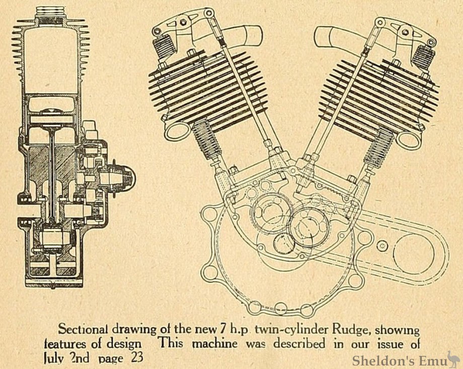 RUDGE-WHITWORTH, LTD., of Coventry, have decided to market a 7 h.p. twin-cylinder machine which is suitable for solo or side-car use. It is well known that the Rudge Co. have been studying the twin- cylinder question for some time past, and have had many designs on paper, but the new production which forms the subject of the drawings and photographs accompanying this article will be found to follow very closely Rudge practice in engine design.