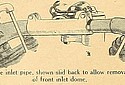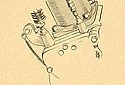 As regards consumption, with a sidecar it has been found to be in the neighbourhood of fifty miles per gallon on difficult roads, but it is hoped to do better than this later. The Rudge tank design is eminently suitable for a sidecar, for it will be remembered that the large tank is used solely for petrol, and has a capacity of 2¼ gallons. The oil is carried in a special compartment at the rear of the seat tube, and the oil pump is operated by a pedal on the right footrest.