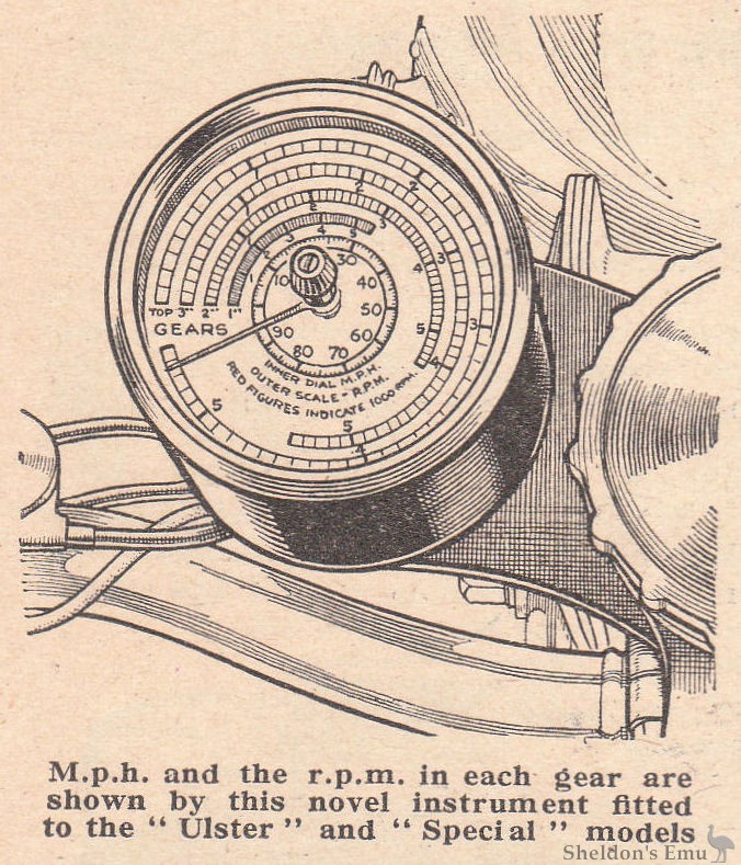 M.p.h. and the r.p.m. in each gear are shown by this novel instrument fitted to the "Ulster" and "Special" models.
