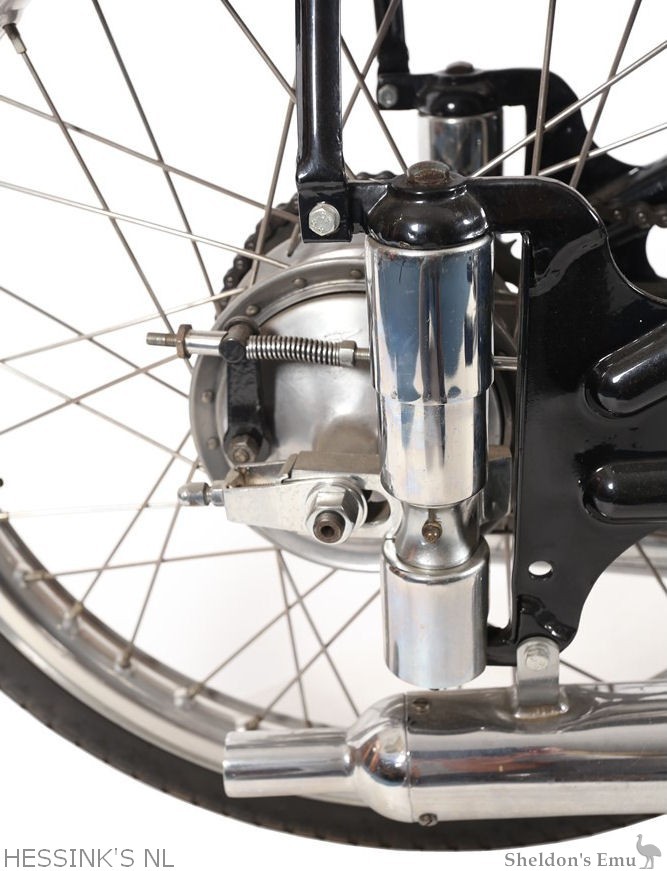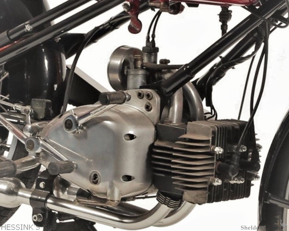 From 1952, Rumi built the SuperSport model of its twin for road racing with two Dell'Orto carburettors mounted vertically above the engine and its own design of bottom-link front forks. The racing Rumis were developed by former FN and Saroléa designer Salmaggi, whose tuned version of the 125cc Super Sport motor produced 8 HP at 7,000 rpm and was good for 72 mph.
