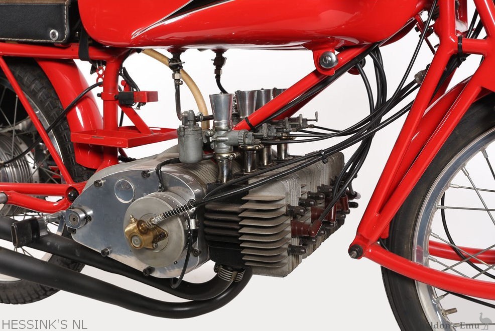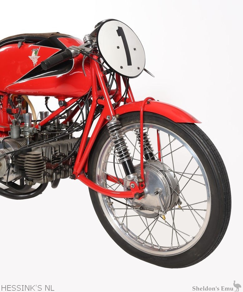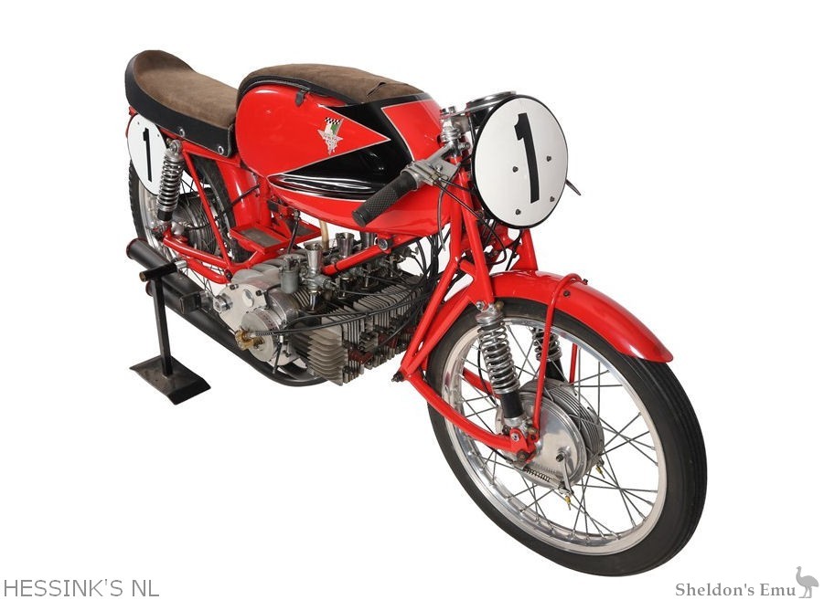The engine was created using two 125cc Moto Rumi two-stroke parallel twins. Only three of these machines were built.