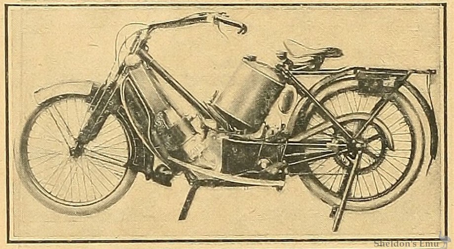 1906 For one year, a basic 2½ hp single was offered called the 'Scout'. It was a typical primitive with rigid forks and belt drive. Although the claim was made that they produced the engine themselves, it was probably bought in.