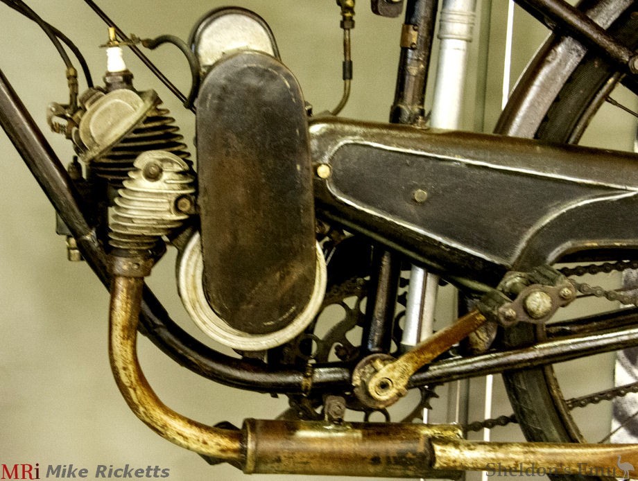 The 65cc four-stroke engine had the carburettor mounted at the front, facing into the airstream. Given the scant filtration and the frequently dusty roads, the engine's longevity was probably not extensive.