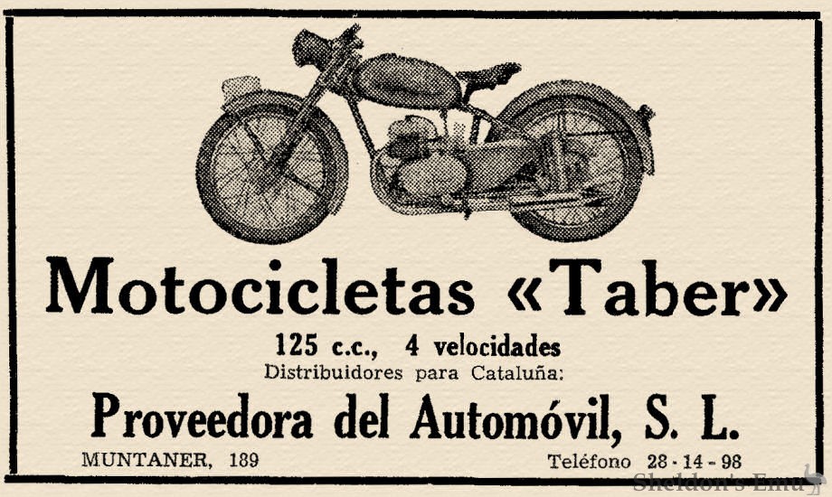 Manufactured in Barcelona by Talleres Edel between 1952 and 1955, the Taber was a stylish machine and was technically quite advanced. It was fitted initially with a 125cc Pons engine and later with one of its own manufacture.