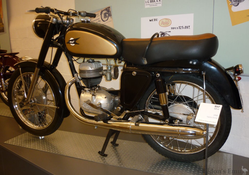The MAF was manufactured between 1958 and 1964 in Figueres (Alt Empordà). They produced 150cc and 175cc models and had plans to continue with the Evycsa 250 but these did not come to fruition.