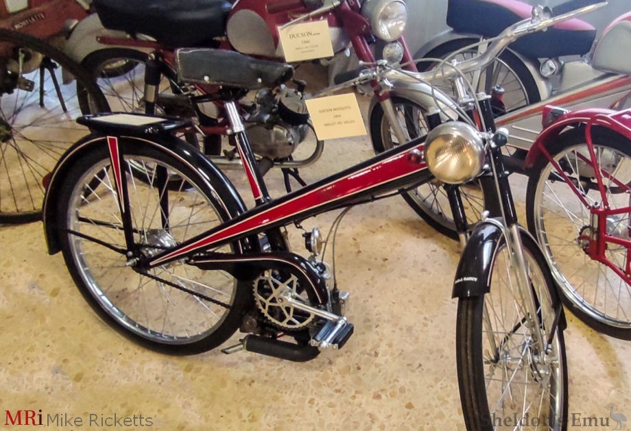 In the early 50s the firm built bicycle and motorcycle components before, in 1954, launching their own motorycle, the Ducson, initially with a Mosquito engine and the following year with a 49cc Setter. 1958 saw the introduction of rear suspension.