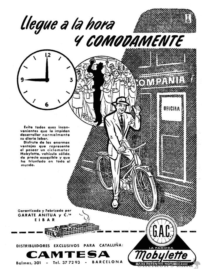 Garate, Anitua y Compañía ( GAC ) began, with a similar name, in the mid-1800s. Based in Éibar in the Basque Country it initially manufactured weapons before entering the bicycle trade. In 1951 they formed an agreement with Motobecane allowing them to build the Mobylette and other similar mopeds. They moved to a new factory in Abadiano, Vizcaya where production continued from 1977 until their closure in 2003.