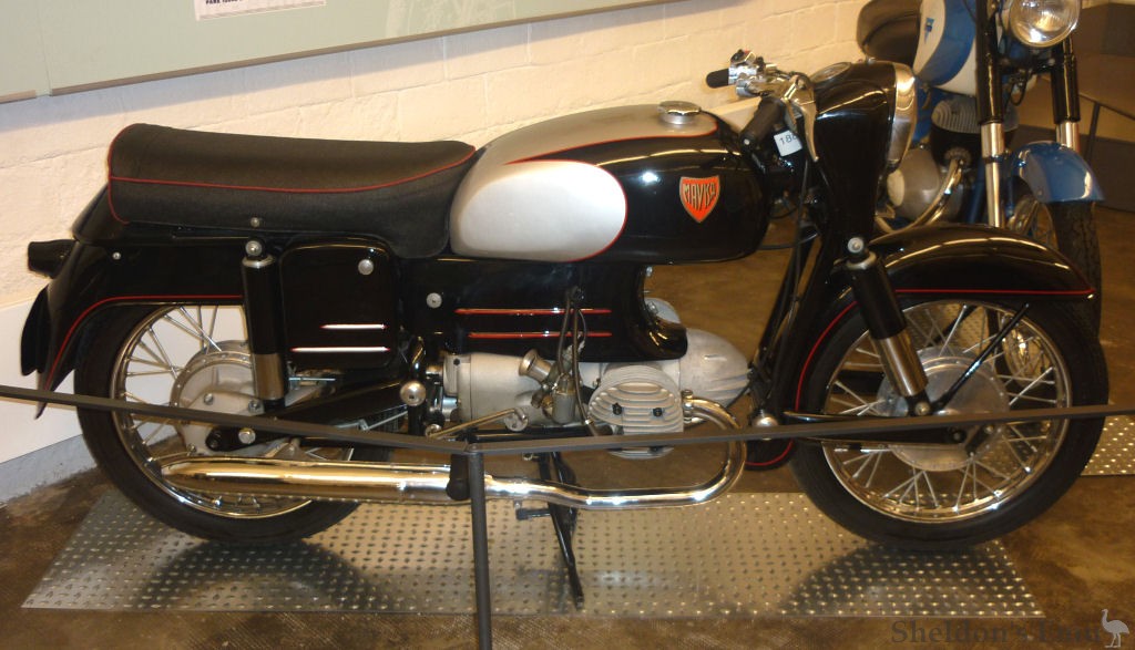 The two-stroke 248cc flat-twin engine was constructed and tested in the family garage, whilst the chassis was built by Dunjó. By 1957 a second prototype was displayed at the Fira de Barcelona, this time a Sport with 14in wheels in place of the 18in on the Turismo.