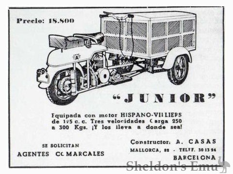 They also built the Junior microcar from 1955, powered by Hispano-Villiers 125 and 197cc engines. Only 16 or so were built and were distributed by the Marcom company.