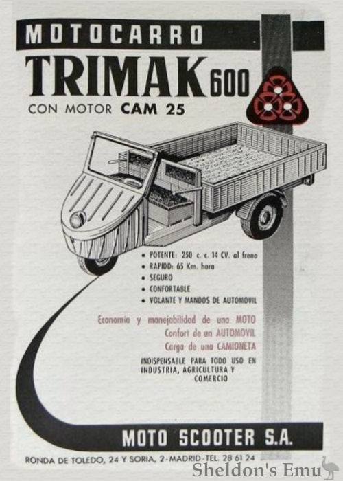 After Rondine failed in 1957, Trimak took over their premises. Indications are that in 1958 Trimak produced motorcycles fitted with a 250cc engine which delivered up to 14 horsepower, and that this was a Rondine engine.