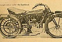 This model differs from the foregoing solely in the engine, which is the popular Barr and Stroud sleeve valve pattern. The installation has been very neatly carried out with the magneto sheltered behind the cylinder. The engine cradle is very stiff, and the oil from the crank case release is neatly directed on to the primary chain.