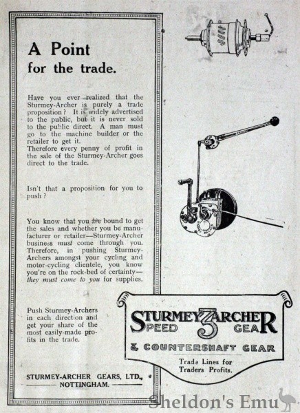The company was founded in 1902 by Henry Sturmey and James Archer under the guidance of Frank Bowden (from whose name the term 'Bowden cable' originates) the primary owner of the Raleigh bicycle company.