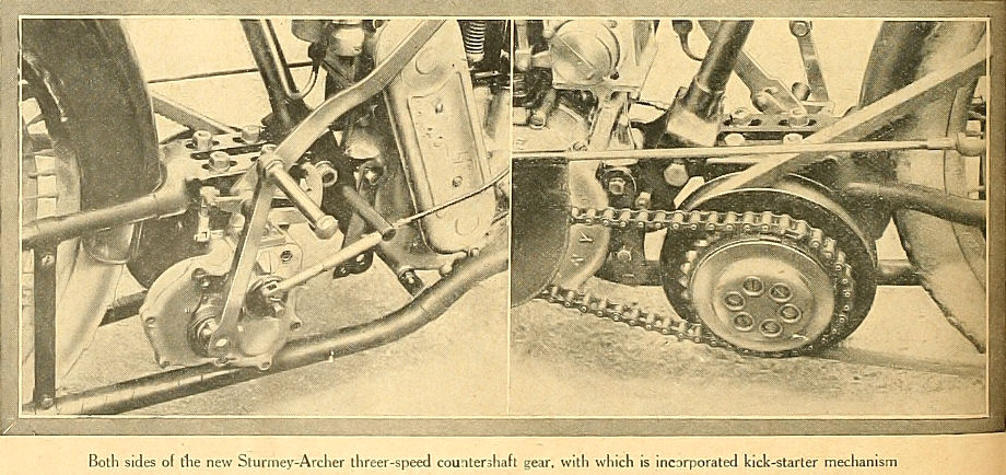 Both sides of the new Sturmey-Archer three-speed countershaft gear, with which is incorporated kick-starter mechanism
