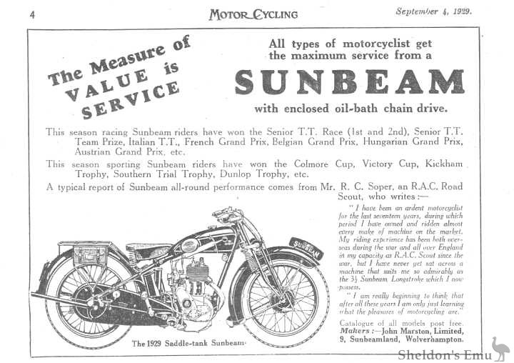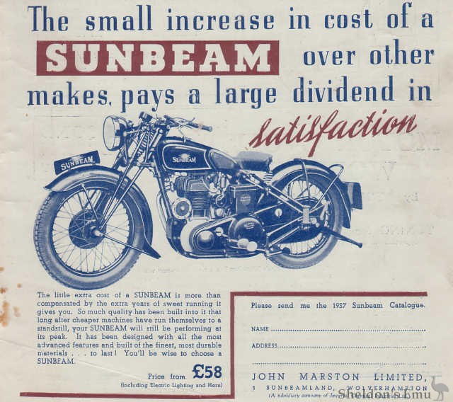 1932-1933 The list was extended and three new models were added. Sunbeam was now in financial difficulty as sales had slowed down, but they were still committed to building their machines to the highest possible standards.