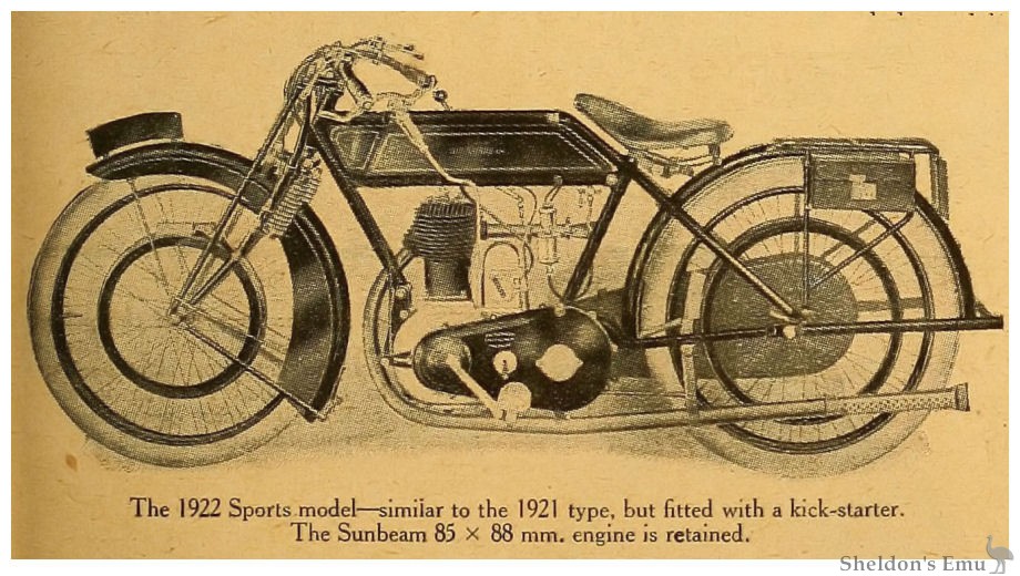 The 1922 Sports model - similar to the 921 type, but fitted with a kick-starter. The Sunbeam 85 x 88 mm. engine is retained.