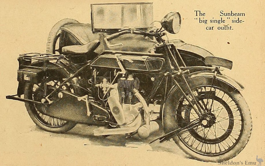4¼ h.p. sidecar model : long-stroke engine, interchangeable wheels. Sunbeam leaf spring fork, internal expanding rear brake. £141 15s.