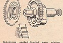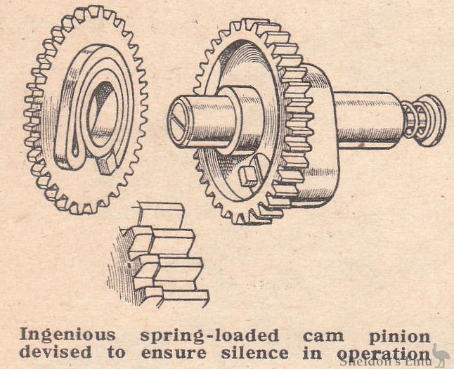 Ingenious spring-loaded cam pinion devised to ensure silence in operation.