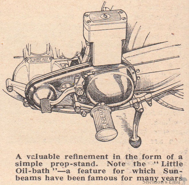 A valuable refinement in the form of a simple prop-stand. Note the Little Oil-bath " - a feature for which Sunbeams have been famous for many years.