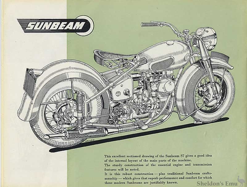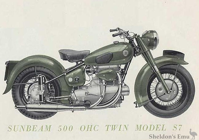 The Sunbeam S7 and S8 are British motorcycles designed by Erling Poppe based on the BMW R75 designs that were acquired by BSA (together with the full rights to the Sunbeam brand) at the end of World War II. Built in Redditch, the engine layout was an unusual in-line 500 cc twin which drove a shaft drive to the rear wheel. The inline engine made this technologically feasible - horizontally-opposed ("flat") twin engines on BMW motorcycles had already used shaft drives.