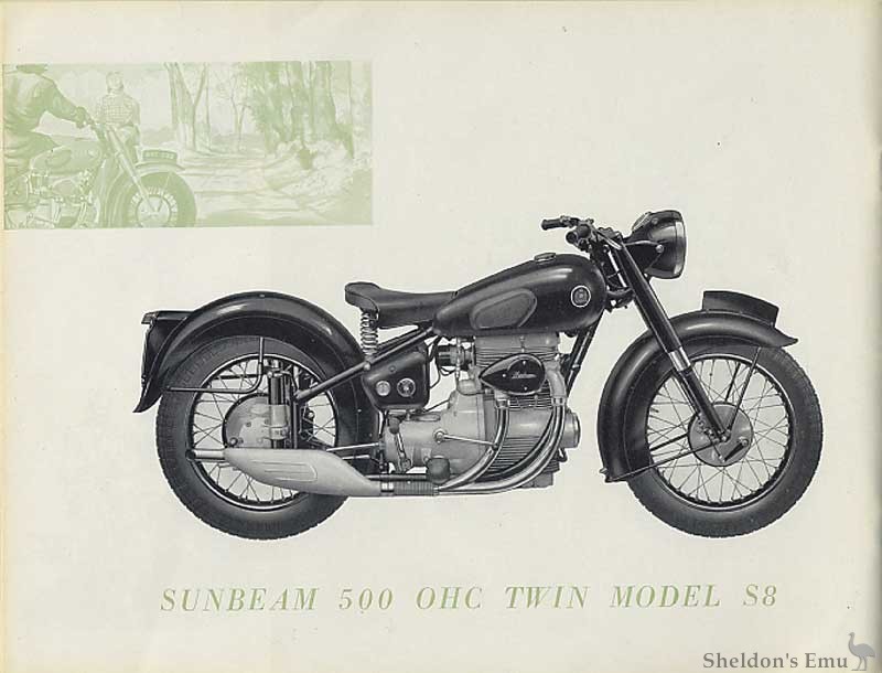 In 1949 the S7 was updated to become the S7 deluxe and the S8. Both had new cylinder linings, redesigned frames and increased oil capacity. The S8 was sold as a "sports" model with increased performance from higher compression pistons with a top speed of 85 mph. It also had new forks, a cast aluminum silencer and chromed wheels (with narrower tyres to replace the "Balloon" tyres which had led to uncertain handling at speed).