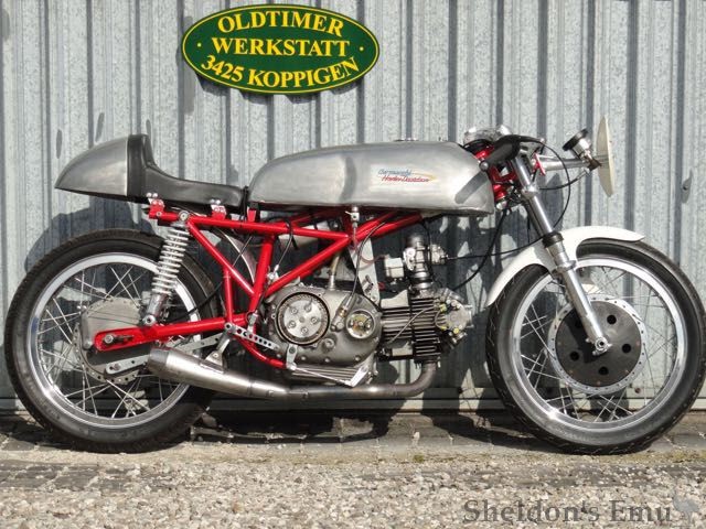 Manufactured by Werner Maltry, a Motobi importer in Zurich in the 50s and 60s. He increased the capacity of the Motobi 175cc Catria engines to 250cc and achieved good results in local races, winning the Schweizer Bergmeisterschaft (Swiss mountain championship). Working with Hans Georg Reiter he produced 250 and 350cc singles and a Motobi-derived 500cc twin dubbed the "Reima". Most machines were badged Motobi, as was the sales literature, but the address on the brochures was Zurich.