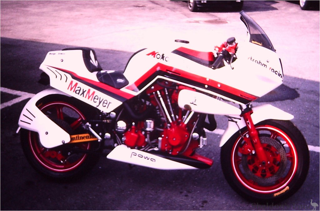 Earlier machines were powered by Yamaha XS twins, Ducati bevel twins, FJ1100 & GSX1300 fours, Honda CBR and Harley-Davidson. Around 100 of these motorcycles were produced in Germany, some of which had engines bored to 1023cc with a claimed output as high as 98bhp.