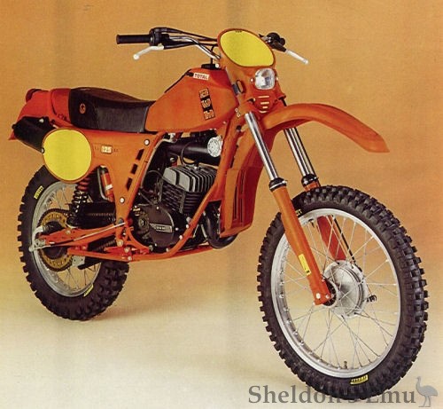 At that year's Milan Show they presented a regular model equipped with a six-speed Sachs engine. The production of enduro motorcycles began a year later at the factory in Rivolta d'Adda and models with engines of 50, 100 and 125cc were proposed. The new company is immediately in the limelight, having won the Italian 125cc motocross championship with Rustignoli riding, while Rottigni took third place in the 125 European Enduro Championship class and won three medals at the Six Day in Czechoslovakia.