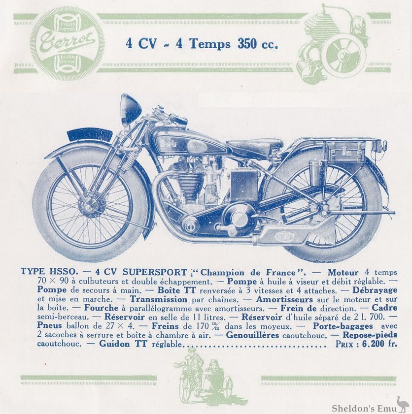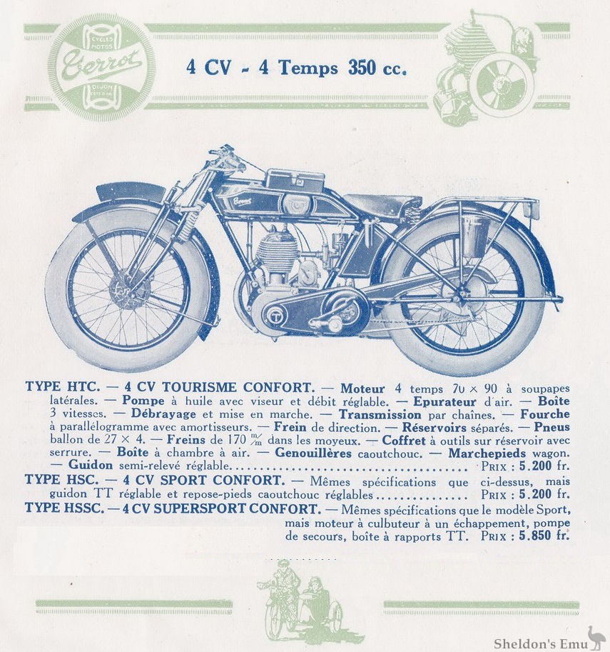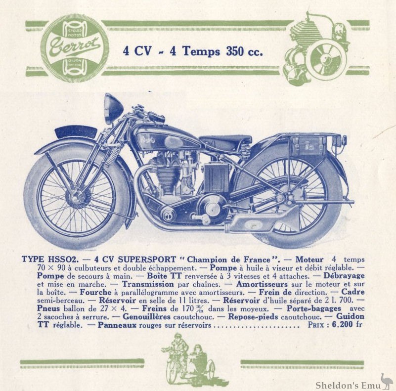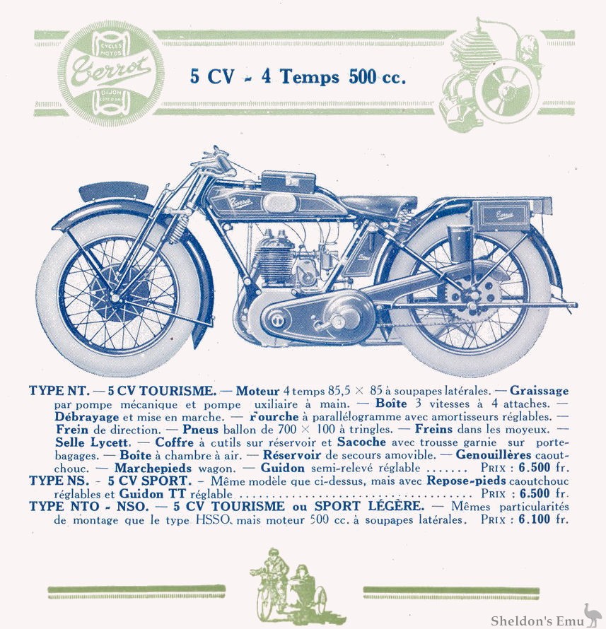 Mêmes particularités de montage que le type HSSO. mais moteur 500 cc. à soupapes latérales. Prix : 6.100 fr.